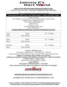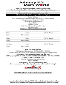 Now that we have our Tuesday online triples league off and running…..We will be doing a ONLINE Thursday night doubles league. We will do a handicapped and master league for this night. Rosters are due in by 5/4/15. Short 9 week season!